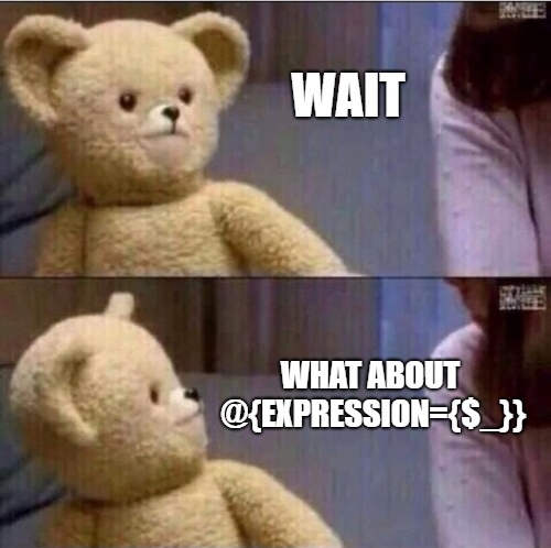 The Expression script block itself behaves like a pipeline-bound property so $_ always refers to the current pipeline item.